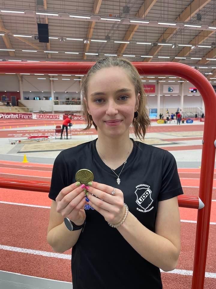 Det blev medalj för IF Udd vid IJSM-IUSM 17 i friidrott i Karlstad i helgen Anna Bergdén startade i längd och tresteg. Efter tre misslyckade längdhopp på lördagen så laddade hon om inför söndagen och tog sig an tresteget i F 19-klassen med full glöd. Efter ett halvdant första hopp blev det 11,41 i andra. Anna var därmed med i den tuffa medaljkampen. I femte omgången kom fullträffen. Det blev 11,69. Med nio centimeters marginal knep Anna bronsmedaljen i mästerskapens sista teknikgren. Olivia Hansén sänkte sitt personbästa på F17 60 m häck i försöken med elva hundradelar till 9,04. Olivia gjorde sedan en bra final men lyckades inte krypa ner ytterligare tidsmässigt. Hennes finaltid på 9,10 gav en sjundeplats. Gabriel Darin startade på lördagen i P19 60 m på tiden 7,33 som tyvärr inte räckte till final. Söndagens start i P19 längd slutade med tre kryss men dagen fortsatte med firande av hans födelsedag. Ett stort grattis Gabriel på 18-års dagen IF Udd 27 feb 2023 0kommentarer