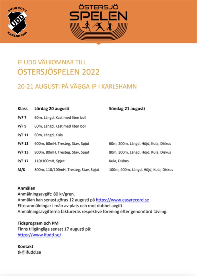 Idag är sista dag för anmälan till Östersjöspelen! IF Udd 12 aug 2022 0kommentarer